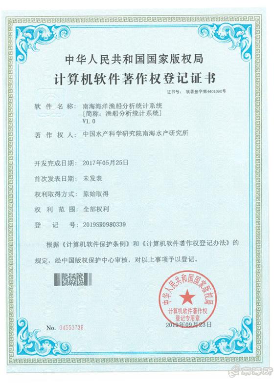 鏃ュ墠錛岀敱涓浗姘翠駭縐戝鐮旂┒闄㈠崡嫻鋒按浜х爺絀舵墍椹儨浼熺瓑鐮斿彂鐨勨滃崡嫻鋒搗媧嬫笖鑸瑰垎鏋愮粺璁$郴緇烿1.0鈥濓紙綆縐扳滄笖鑸瑰垎鏋愮粺璁$郴緇烿1.0鈥濓級鑾峰緱鍥藉鐗堟潈灞璁$畻鏈鴻蔣浠惰憲浣滄潈鐧昏璇佷功錛岃瘉涔﹀彿涓鴻蔣钁楃櫥瀛楃4401096鍙鳳紝鐧昏鍙蜂負2019SR0980339銆?/p>