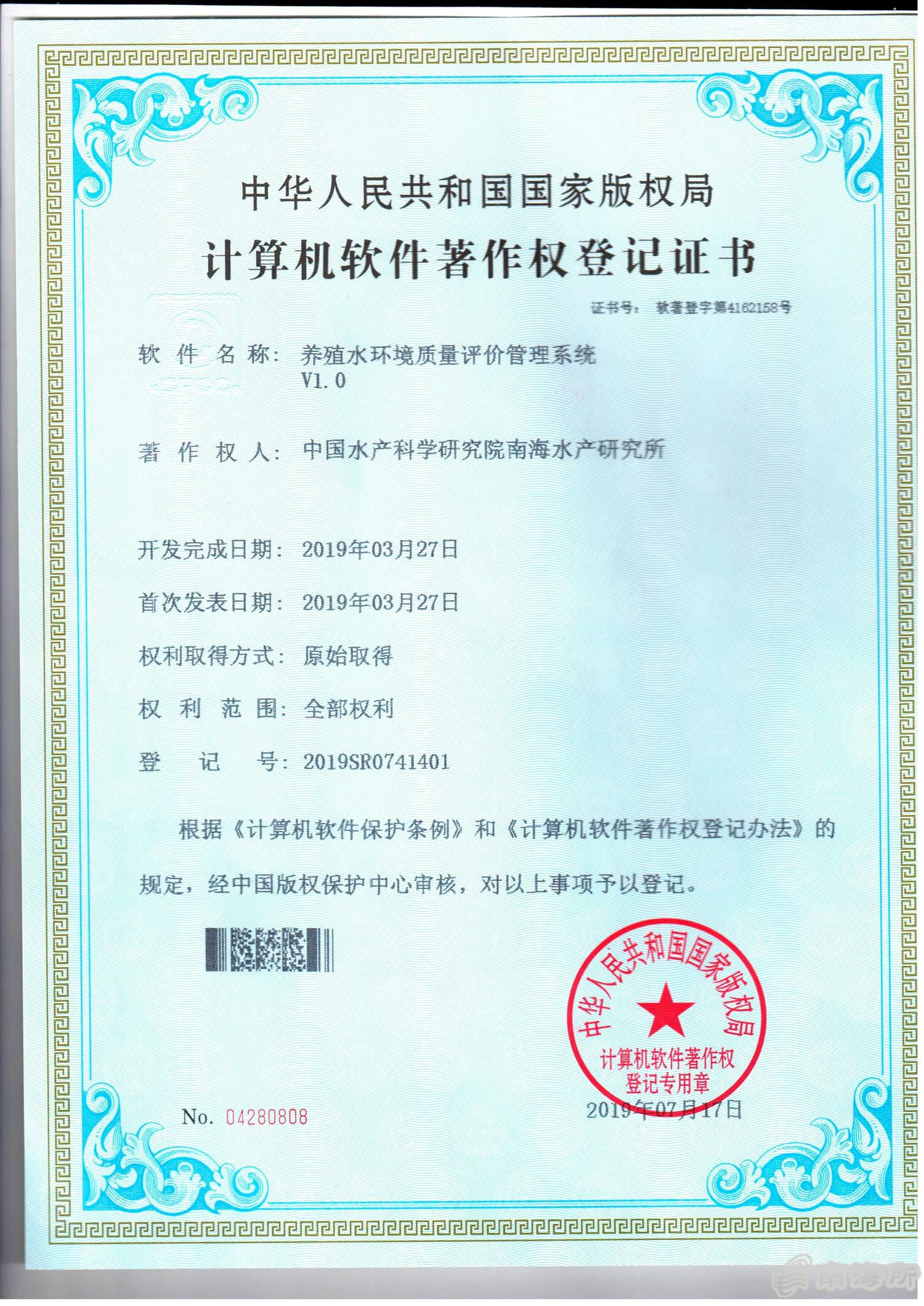 鏃ュ墠錛岀敱涓浗姘翠駭縐戝鐮旂┒闄㈠崡嫻鋒按浜х爺絀舵墍鏇圭厹鎴愮瓑鐮斿彂鐨勨滃吇孌栨按鐜璐ㄩ噺璇勪環(huán)綆$悊緋葷粺V1.0鈥濊幏寰楀浗瀹剁増鏉冨眬璁$畻鏈鴻蔣浠惰憲浣滄潈鐧昏璇佷功錛岃瘉涔﹀彿涓鴻蔣钁楃櫥瀛楃4162158鍙鳳紝鐧昏鍙蜂負(fù)2019SR0741401銆?/p>