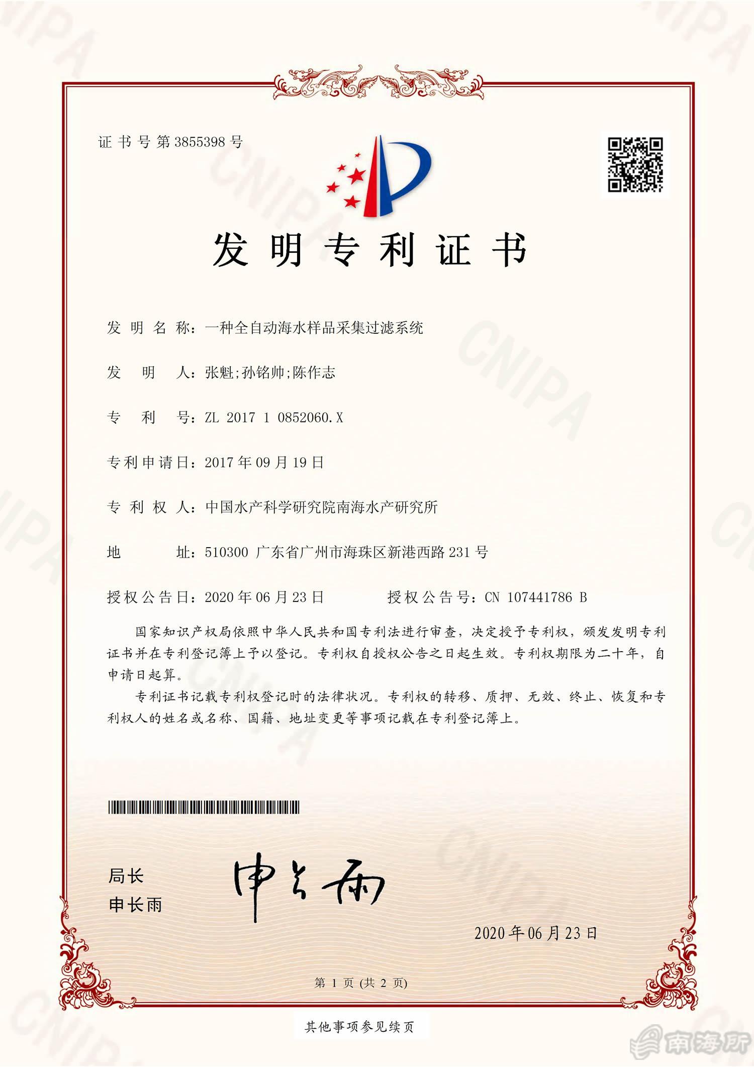鏃ュ墠錛岀敱涓浗姘翠駭縐戝鐮旂┒闄㈠崡嫻鋒按浜х爺絀舵墍寮犻瓉銆佸瓩閾竻銆侀檲浣滃織鍙戞槑鐨勨滀竴縐嶅叏鑷姩嫻鋒按鏍峰搧閲囬泦榪囨護緋葷粺鈥濊幏寰楀浗瀹跺彂鏄庝笓鍒╂巿鏉冿紝涓撳埄鍙蜂負ZL201710852060.X銆?/p>