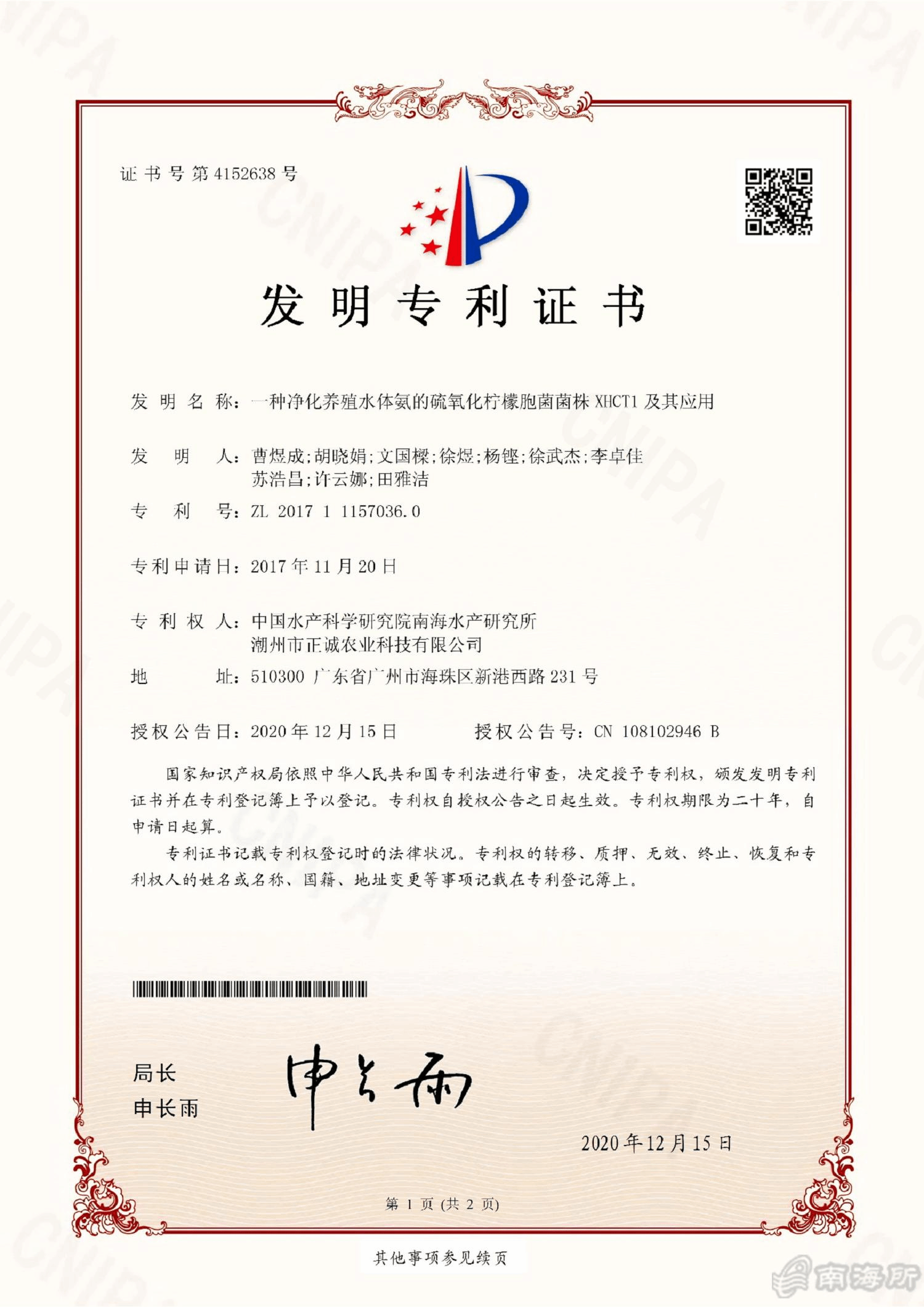 鏃ュ墠錛岀敱涓浗姘翠駭縐戝鐮旂┒闄㈠崡嫻鋒按浜х爺絀舵墍鏇圭厹鎴愩佽儭鏅撳銆佹枃鍥芥☉絳夊彂鏄庣殑鈥滀竴縐嶅噣鍖栧吇孌栨按浣撴皚鐨勭~姘у寲鏌犳鑳炶弻鑿屾牚XHCT1鍙婂叾搴旂敤鈥濊幏鍥藉鍙戞槑涓撳埄鎺堟潈錛屼笓鍒╁彿涓猴細ZL201711157036.0銆傝鑿屾牚鐜頒繚钘忎簬涓浗鍏稿瀷鍩瑰吇鐗╀繚钘忎腑蹇冿紝淇濊棌緙栧彿CCTCC錛歁2017436銆?/p>