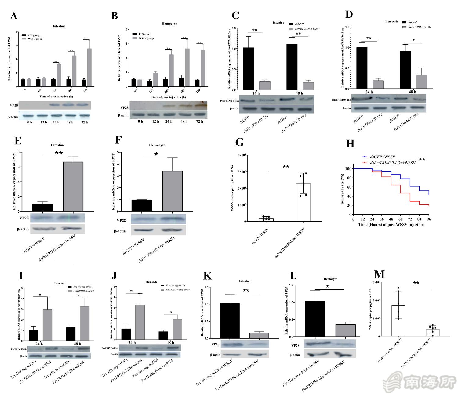鍥? PmTRIM50-like 鎶戝埗WSSV渚墊煋鏂戣妭瀵硅櫨