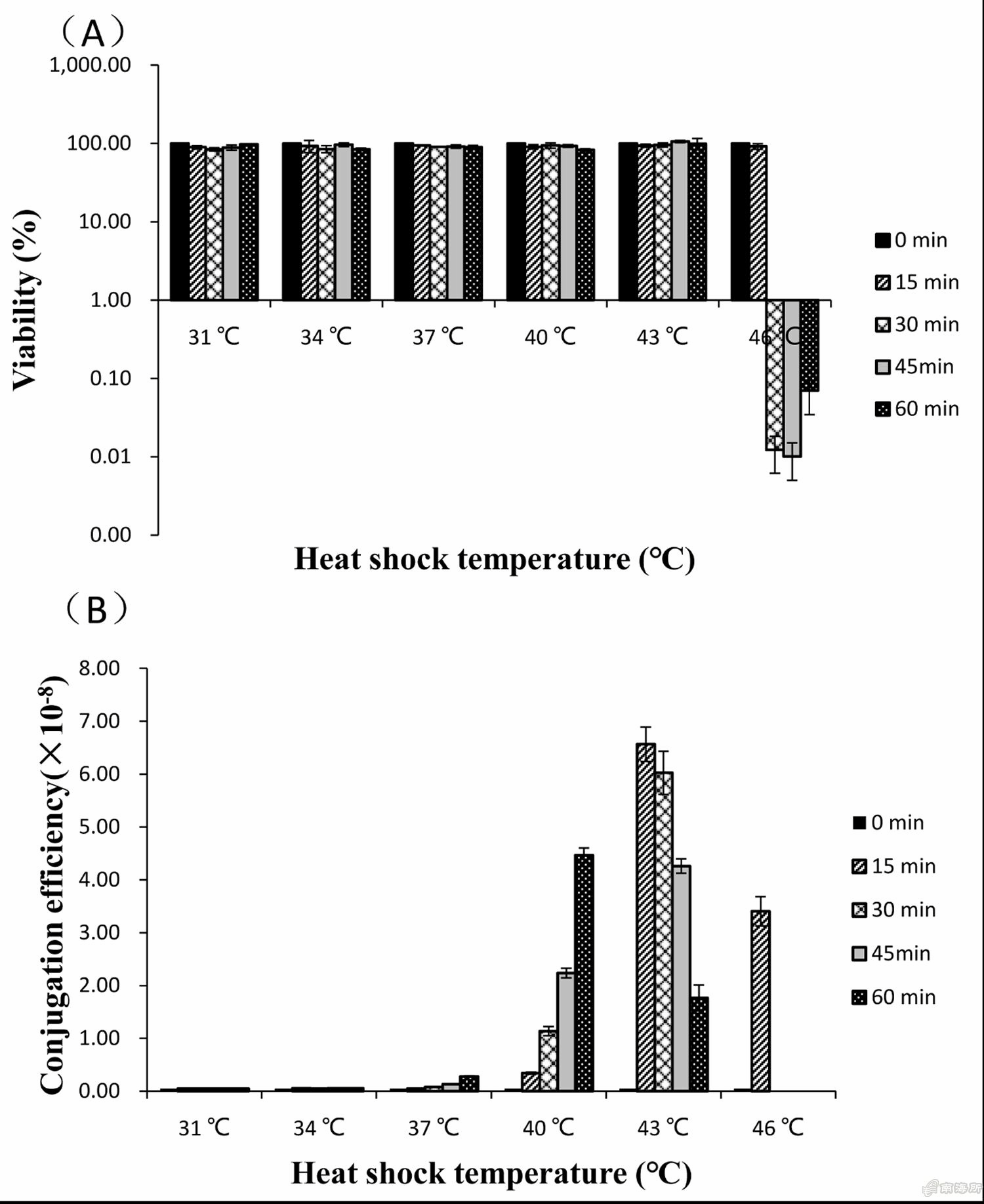 1 涓嶅悓娓╁害鑳佽揩瀵瑰搱緇村姬鑿屾帴鍚堣漿縐繪晥鐜囩殑褰卞搷銆傦紙A錛変笉鍚屾俯搴︺佷笉鍚屾椂闂磋儊榪笅錛屽搱緇村姬鑿岀殑瀛樻椿鐜囷紱錛圔錛変笉鍚屾俯搴︺佷笉鍚屾椂闂磋儊榪笅錛屽搱緇村姬鑿岀殑鎺ュ悎杞Щ鏁堢巼銆?/span>