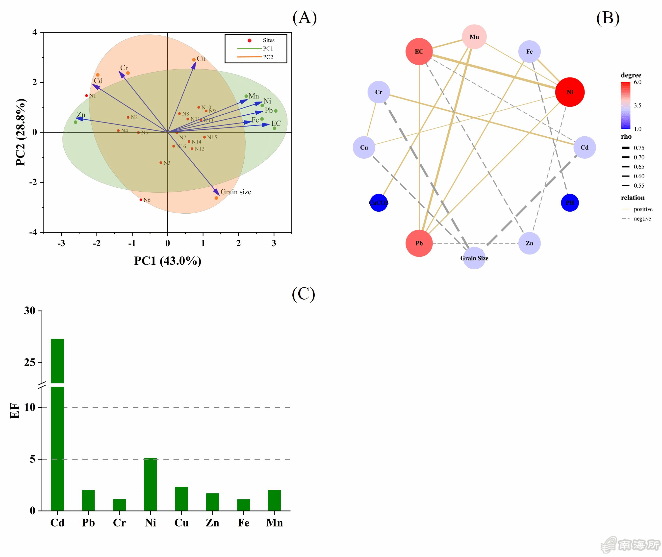 綺や笢鍩庡競緹ゅ尯鍩熸按浜у吇孌栨箍鍦版矇縐墿涓噸閲戝睘涓繪垚鍒嗗垎鏋愮粨鏋滐紙A錛夈侀噸閲戝睘涓庣矑搴︾浉浜掑叧緋葷綉緇滃浘錛圔錛夊拰瀵岄泦鍥犲瓙鍥撅紙C錛夈?/span>