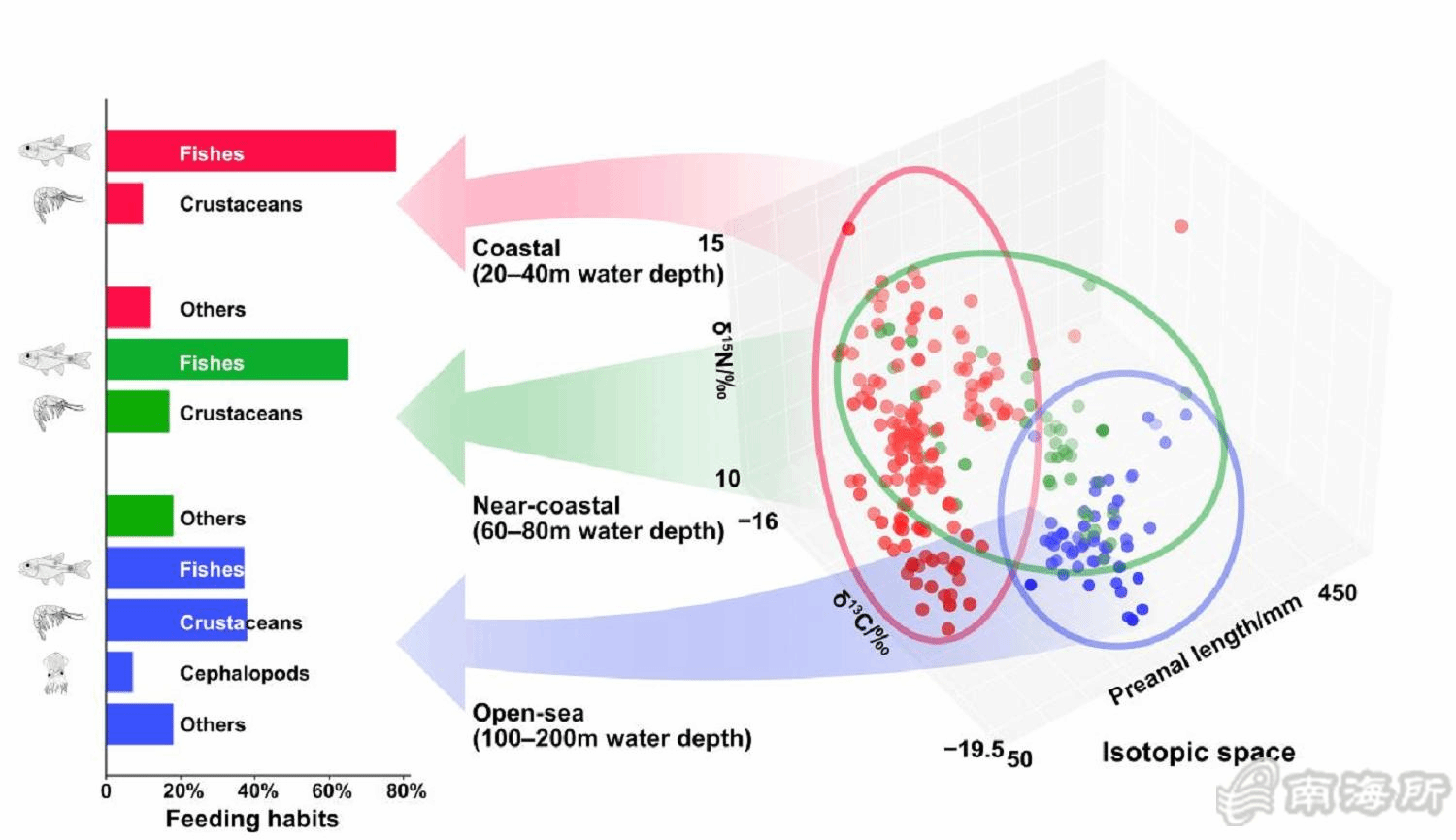 榪戞棩錛屼腑鍥芥按浜х瀛︾爺絀墮櫌鍗楁搗姘翠駭鐮旂┒鎵鍗楁搗娓斾笟璧勬簮璋冩煡涓庤瘎浼板垱鏂板洟闃熼氳繃鑱旂敤紼沖畾鍚屼綅绱犲拰鑳冨惈鐗╅暅媯(gè)鎶鏈紝緋葷粺鐮旂┒浜?jiǎn)鍗棆狗鍖楅儴甯﹂丙|紙Trichiurus lepturus錛夌殑钀ュ吇鐢熸佷綅鍜屾憚椋熶範(fàn)鎬э紝鍚屾椂瑙f瀽浜?jiǎn)鍏督E沖畾鍚屼綅绱犵壒寰佷笌鐜鐨勭浉鍏蟲(chóng)э紝涓板瘜浜?jiǎn)瀵瑰甫楸兼憚椋熺敓鎬佸鐨勭悊璁鴻鐭ワ紝鎻ず浜?jiǎn)楂樿惀鍏痪Uч奔綾誨湪榪囧害鎹曟崬涓庣敓鎬侀鍖栬儗鏅笅鐢熷瓨絳栫暐鐨勫彉鍖栥傝鐮旂┒鎴愭灉浠モ淪table isotopic and stomach content analyses reveal changes in the trophic level and feeding habit of large-head hairtail (Trichiurus lepturus) in the northern South China Sea鈥濅負(fù)棰橈紝鍙戣〃鍦ㄥ浗闄呯幆澧冧笌鐢熸佸棰嗗煙鏈熷垔Science of The Total Environment (涓闄?鍖猴紝IF=9.8)銆傝仈鍩圭爺絀剁敓鐜嬪紑绔嬩負(fù)絎竴浣滆咃紝鏉庝匠淇婂姪鐞嗙爺絀跺憳?shù)笌闄堜綔蹇楃爺绌跺憳?shù)負(fù)閫氳浣滆呫?/p>