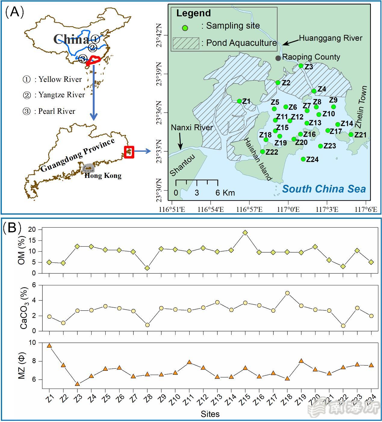 鍥?. 鏌樻灄婀鵑噰鏍風珯浣嶇ず鎰忓浘錛圓錛夊拰娌夌Н鐗╃悊鍖栫壒寰佸垎甯冨浘錛圔錛夛紱OM錛氭湁鏈鴻川錛汣aCO3錛氱⒊閰擱挋錛汳Z錛氫腑鍊肩矑寰勩?/span>