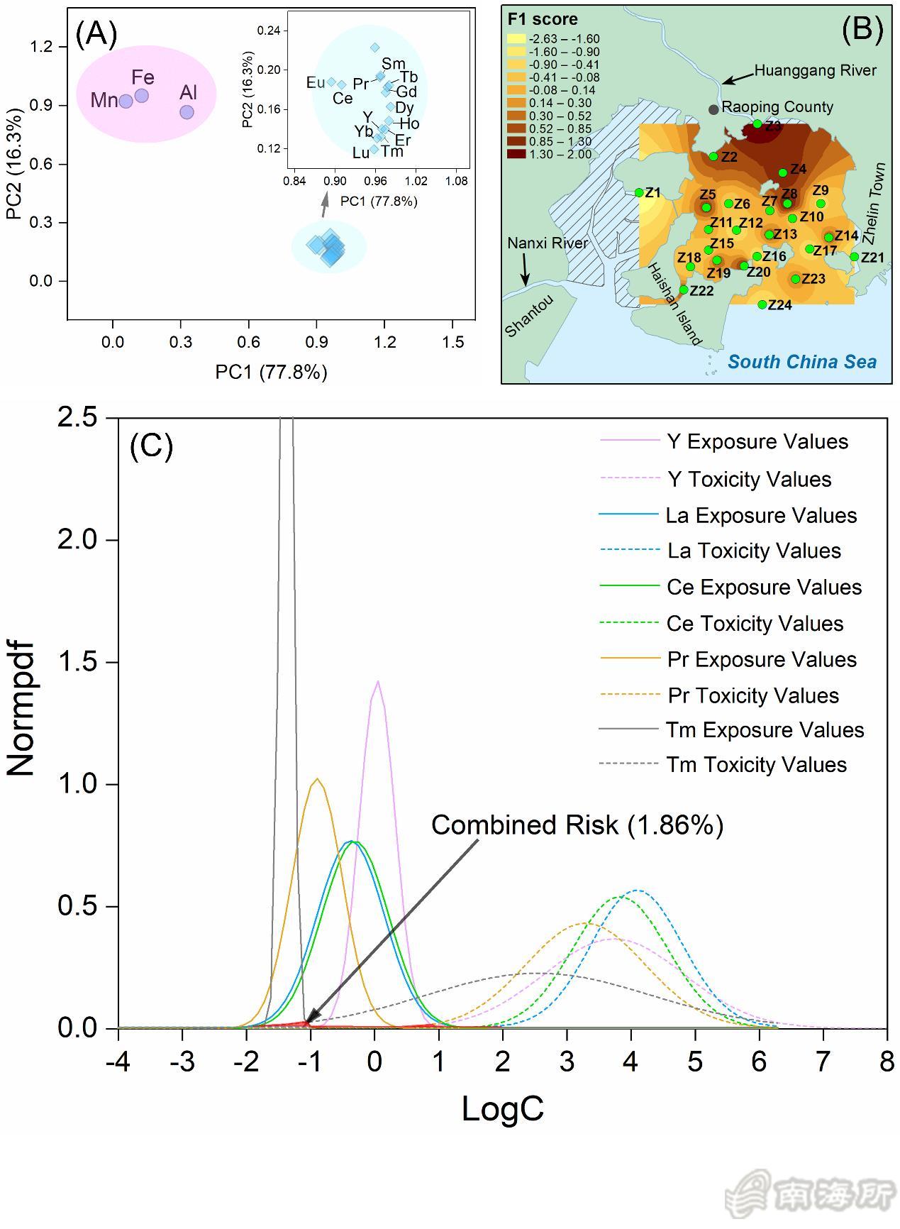 鍥?. 紼鍦熷厓绱狅紙REEs錛夊拰涓婚噺鍏冪礌鍥犲瓙杞借嵎鐨勫垎甯冨浘錛圓錛夛紱F1鍥犲瓙寰楀垎絀洪棿鍒嗗竷鍥撅紙B錛夛紱鏌樻灄婀炬矇縐墿涓█鍦熷厓绱犲姘寸敓鐢熺墿鍖虹郴椋庨櫓姒傜巼錛圕錛夈?/span>