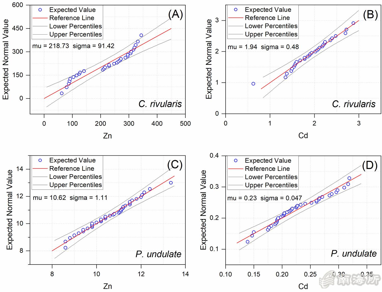 鍥?/span>2. 鍗楁搗鍖楅儴榪戞睙鐗¤泿鍜屾嘗綰瑰反闈炶洡鏍鋒湰涓攲鍜岄晧鐨勬鎬?/span>Q-Q鍥俱?/span>