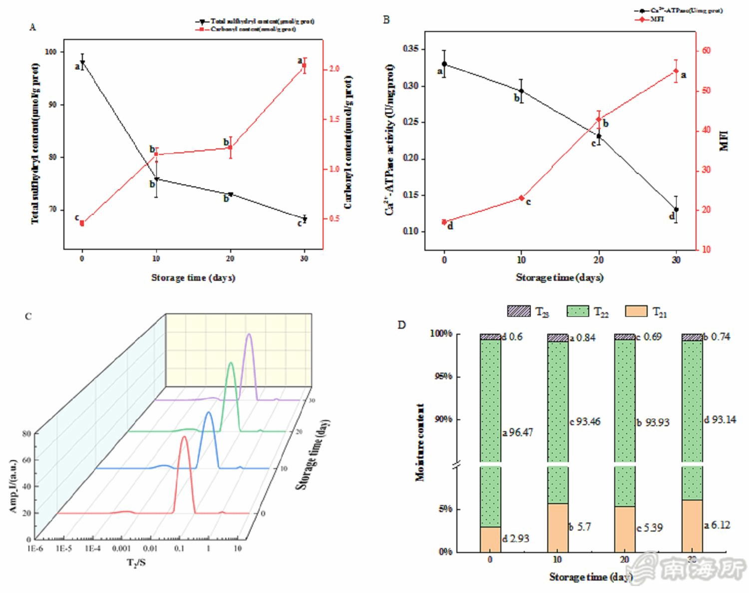 鍗楁搗鎵鍒涙柊鍥㈤槦閫氳繃鐩戞祴鏂戣妭瀵硅櫨鍦ㄥ喎鍐昏串钘忚繃紼嬩腑鍥哄畾姘淬佺粨鍚堟按鍜岃嚜鐢辨按涔嬮棿鐨勮縼縐誨彉鍖栵紝鐮旂┒鍏跺湪姝ゆ湡闂村铏捐倢鑲夌殑寰緇撴瀯鍜岃泲鐧借川鍙樺寲瑙勫緥錛屽茍閫氳繃HS-GC-IMS嫻嬪畾鎸ュ彂鎬ф垚鍒嗙殑鍙樺寲銆傜粨鏋滃彂鐜幫細錛?錛夊湪鍐峰喕璐棌榪囩▼涓紝鏂戣妭瀵硅櫨鐨勫浐瀹氭按鐨勫惈閲忔樉钁楅檷浣庯紝鑰岀粨鍚堟按鍜屾父紱繪按鐨勫惈閲忔樉钁楀鍔狅紝緇撳悎姘村拰鍥哄畾姘寸殑榪佺Щ浼氬鑷磋倢鑲夎泲鐧借川姘у寲鍜屽彉鎬э紝瀵艱嚧鍏跺搧璐ㄥ姡鍙橈紱錛?錛夋枒鑺傚铏懼喎鍐昏串钘?0澶╁悗錛岃倢鍘熺氦緇磋鍐版櫠鐮村潖錛屽茍鍦?0澶╂椂鍙戠敓鏂錛岀粏鑳炵粨鏋勫嚭鐜版満姊版崯浼わ紱錛?錛夊湪璐棌鏈熼棿閴村畾鍑虹殑50縐嶆尌鍙戞у寲鍚堢墿涓紝鏈?縐嶅寲鍚堢墿涓庣粨鍚堟按鐨勫彉鍖栨湁鍏籌紝28縐嶆尌鍙戞у寲鍚堢墿鍜?7縐嶆尌鍙戞у寲鍚堢墿涓庡浐瀹氭按鍜岃嚜鐢辨按鍛堟樉钁楃浉鍏熾?/p>