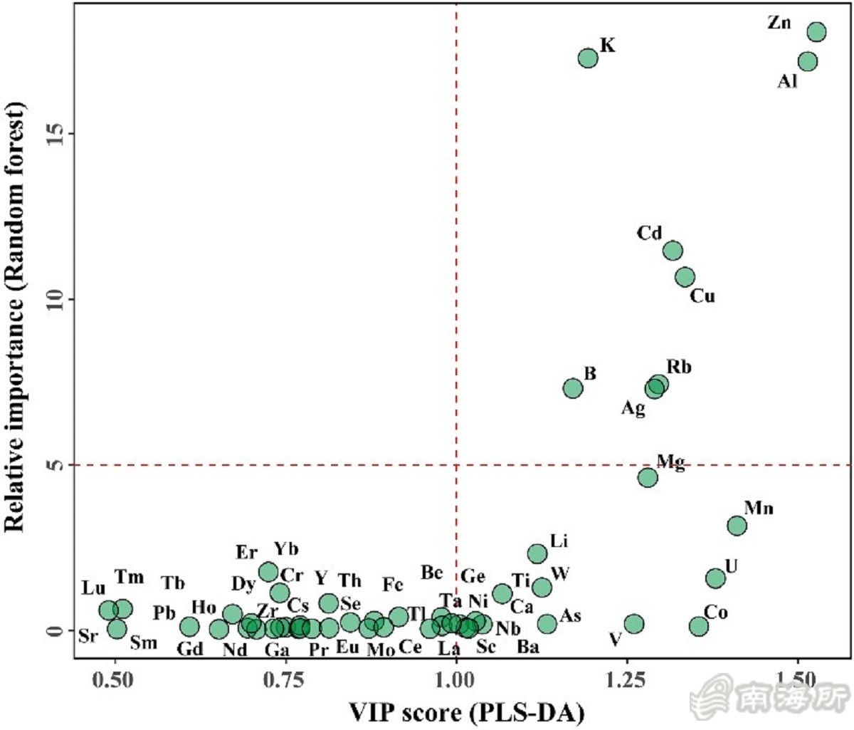 璇ョ爺絀舵祴瀹氫簡閲囪嚜涓浗涓滃崡娌挎搗鍥涗釜鍦板尯錛堝畞寰楓佹儬宸炪佹箾姹熷拰闃插煄娓級鐨?66浠借繎姹熺墶铔庢牱鍝佷腑52縐嶅厓绱犲惈閲忥紝緇撴灉鏄劇ず錛屽叾涓?1縐嶅厓绱犲湪鍖哄煙闂村叿鏈夋樉钁楀樊寮傦紙P < 0.05錛夛紝鐒惰屼富鎴愬垎鍒嗘瀽錛圥CA錛夋湭鑳芥槑紜垝鍒嗙墶铔庣殑鍦扮悊鏉ユ簮銆傚熀浜庣嚎鎬у垽鍒垎鏋愶紙LDA錛夈佸亸鏈灝忎簩涔樺垽鍒垎鏋愶紙PLS-DA錛夊拰闅忔満媯灄錛圧F錛夊緩绔嬬殑璁粌妯″瀷錛坣 = 117錛夊潎瀹炵幇浜?00%鐨勯嫻嬪噯紜巼銆侺DA銆丳LS-DA 鍜孯F鏈緇堟ā鍨嬶紙n = 166錛夌殑浜ゅ弶楠岃瘉鍑嗙‘鐜囧垎鍒揪鍒?100%銆?00%鍜?9.4%銆傛澶栵紝鍩轟簬8縐嶅厓绱狅紙Zn銆丄l銆並銆丆d銆丆u銆丷b銆丅鍜孉g錛夌殑綆鍖栨ā鍨嬩篃淇濇寔浜嗚緝楂樼殑棰勬祴鍑嗙‘鐜囧拰浜ゅ弶楠岃瘉綺懼害銆傛湰鐮旂┒紿佹樉浜嗗厓绱犳寚綰瑰垎鏋愭妧鏈湪鍑嗙‘璇嗗埆鐗¤泿鍦扮悊鏉ユ簮鏂歸潰鐨勫彲琛屾э紝鎷熶負寤虹珛鍜屽畬鍠勭墶铔庢函婧愭妧鏈綋緋繪彁渚涚悊璁轟緷鎹拰鎶鏈敮鎾戙?/p>