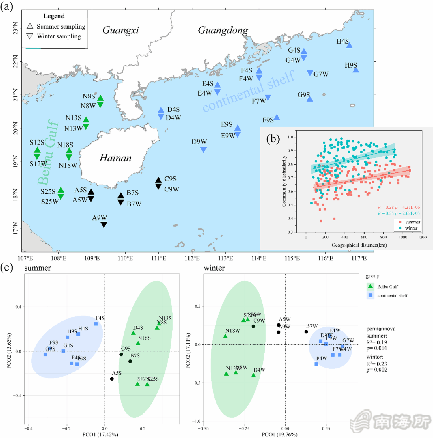 鍗楁搗鎵鍒涙柊鍥㈤槦鏋勫緩浜嗗熀浜庣幆澧僁NA錛坋DNA錛夋妧鏈殑楸肩被澶氭牱鎬у緇磋瘎浠鋒柟娉曪紝騫剁粨鍚堟嫋緗戞墜孌佃В鏋愪簡鍗楁搗鍖楅儴闄嗘灦嫻峰煙楸肩被緹よ惤緇撴瀯鏃剁┖鍙樺寲鐗瑰緛浠ュ強涓庣幆澧冨洜瀛愮殑鍏崇郴銆傚垱鏂板洟闃熼夋嫨鍗楁搗鍖楅儴200綾蟲按娣變互嫻呯殑嫻峰煙浣滀負鐮旂┒鍖哄煙錛屽垎鍒簬澶忓鍜屽啲瀛i噰闆嗗涓珯鐐圭殑姘存牱錛堝浘1錛夛紝騫跺悓姝ヨ繘琛屼簡搴曟嫋緗戦噰鏍峰拰鐜鏁版嵁閲囬泦銆傞氳繃eDNA瀹忔潯鐮佹妧鏈В鏋愪簡楸肩被鐗╃緇勬垚錛屼粠偽澶氭牱鎬у拰尾澶氭牱鎬у眰闈㈣瘎浼頒簡TD銆丗D鍜孴D銆?/p>