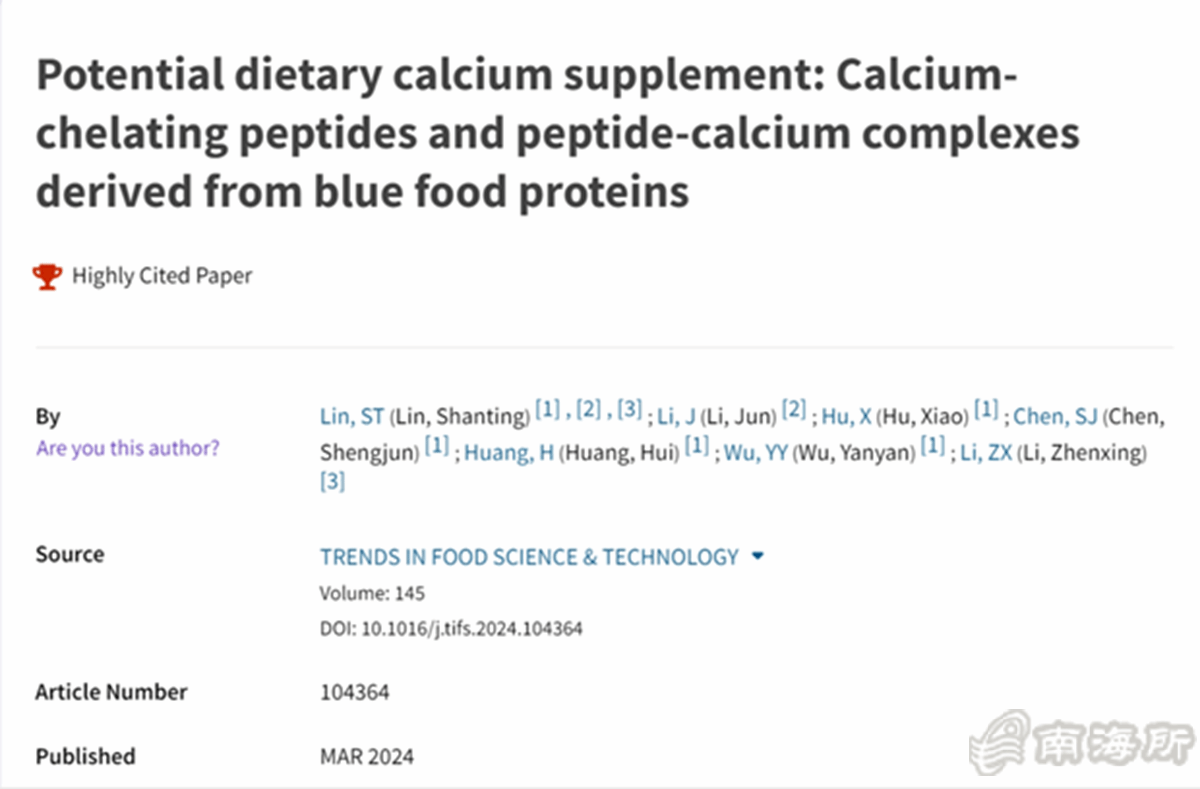 鏃ュ墠錛屾牴鎹瓻SI鍏竷鐨勬渶鏂版暟鎹紝涓浗姘翠駭縐戝鐮旂┒闄㈠崡嫻鋒按浜х爺絀舵墍闄㈢駭姘翠駭鍝佺簿娣卞姞宸ヤ笌楂樺煎寲鍒╃敤鍒涙柊鍥㈤槦鑳℃檽鐮旂┒鍛樹綔涓洪氳浣滆咃紝鍏舵寚瀵肩殑鑱斿煿鍗氬+鐢熸灄鍠勫┓浣滀負絎竴浣滆咃紝鍦?span style="font-family: "times new roman";">Trends in Food Science & Technology錛圛F=15.1錛夊彂琛ㄧ殑鐮旂┒璁烘枃鈥?span style="font-family: "times new roman";">Potential dietary calcium supplement: calcium-chelating peptides and peptide-calcium complexes derived from blue food proteins鈥濓紙2024, 145, 104364錛夊叆閫夊叏鐞冨墠1% ESI楂樿寮曡鏂囥?/p>