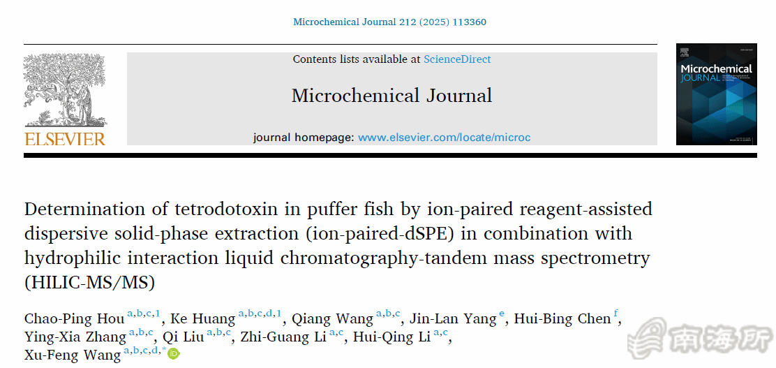 榪戞棩錛屼腑鍥芥按浜х瀛︾爺絀墮櫌鍗楁搗姘翠駭鐮旂┒鎵鎵綰ф按浜у搧涓湁姣掓湁瀹崇墿璐ㄦ嫻嬫妧鏈垱鏂板洟闃熷湪紓佹х撼綾蟲潗鏂欏簲鐢ㄤ簬娌寵睔姣掔礌錛圱TX錛夋嫻嬫柟闈㈠彇寰楁柊榪涘睍錛岃鐮旂┒涓哄吇孌栨渤璞氶奔緇勭粐鏍鋒湰涓紲炵粡姣掔礌鐨勫瘜闆嗗噣鍖栧強瀹氶噺嫻嬪畾鎻愪緵浜嗙伒鏁忎笖鍙潬鐨勫垎鏋愭墜孌點傜浉鍏崇爺絀舵垚鏋滀互鈥?span style="font-family: "times new roman";">Determination of tetrodotoxin in puffer fish by ion-paired reagent-assisted dispersive solid-phase extraction (ion-paired-dSPE) in combination with hydrophilic interaction liquid chromatography-tandem mass spectrometry (HILIC-MS/MS)鈥濅負棰樺彂琛ㄥ湪鍥介檯宸ョ▼鎶鏈湡鍒娿?span style="font-family: "times new roman";">Microchemical Journal銆嬶紙JCR Q1錛孖F=4.9錛屼警瓚呰嫻鍗氬+鍜岄粍鐝傜爺絀跺憳涓哄叡鍚屼負絎竴浣滆咃紝鐜嬫棴宄板壇鐮旂┒鍛樹負閫氳浣滆咃級銆?/p>