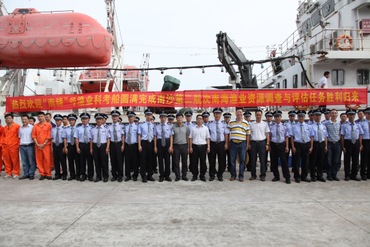 中国水U学研究院南h产研I所“南锋”号调查船圆满完成南沙v?013q第2航次渔业U考Q务,??8日下午抵辑ֹ州。南h所长江世贵、所长助理陈水胜和各处室负责人、职工代表等前往q州新洲调查船基地码头迎接?/p>