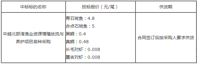 騫垮窞鏈夊痙鎷涙爣浠g悊鏈夐檺鍏徃鍙椾腑鍥芥按浜х瀛︾爺絀墮櫌鍗楁搗姘翠駭鐮旂┒鎵鐨勫鎵橈紝灝變腑瓚婂寳閮ㄦ咕娓斾笟璧勬簮澧炴畺鏀炬祦涓庡吇鎶ら」鐩嫍縐嶉噰璐」鐩紙欏圭洰緙栧彿錛?210-1741YDZB0556錛夌粍緇囬噰璐紝璇勬爣宸ヤ綔宸茬粡緇撴潫錛屼腑鏍囩粨鏋滃涓嬶細(xì)