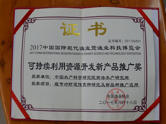 南海所在此次博覽會上集中展示了“斑節(jié)對蝦遺傳育種研究及新品種推廣應(yīng)用”、“南海主要經(jīng)濟海藻精深加工關(guān)鍵技術(shù)”、“卵形鯧鯵種質(zhì)資源發(fā)掘與優(yōu)質(zhì)大規(guī)格苗種規(guī)模化培育技術(shù)”、“高位池循環(huán)水養(yǎng)殖設(shè)備研發(fā)及應(yīng)用”、“對蝦封閉式工廠化循環(huán)水養(yǎng)殖技術(shù)”、“灘涂低鹽蝦魚生態(tài)養(yǎng)殖技術(shù)”、“深水網(wǎng)箱養(yǎng)殖工程技術(shù)及應(yīng)用”、“南海人工魚礁與海洋牧場技術(shù)研究與示范”等8項科技成果,獲得了中國國際現(xiàn)代漁業(yè)暨漁業(yè)科技博覽會頒發(fā)的可持續(xù)利用資源開發(fā)新產(chǎn)品推廣獎3項、養(yǎng)殖增效綠色發(fā)展貢獻(xiàn)獎3項、水產(chǎn)養(yǎng)殖智能化突出貢獻(xiàn)獎1項、海洋牧場綜合利用突出貢獻(xiàn)獎1項。