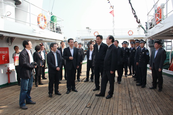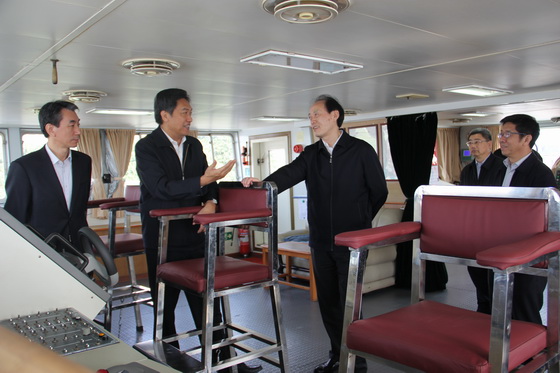 余欣榮副部長、鄧海光副省長一行深入到南海所調查船基地和南海漁業中心進行考察調研,在“南鋒”號科考船上,詳細了解“南鋒”科考船建設歷程及技術參數和主要功能,詢問了船舶運轉、管理、執行科考任務等有關情況;在南海漁業中心,參觀了南沙漁船船位監控系統,了解了南沙漁船實時監控平臺、南沙漁業管理溝通協調工作機制等有關情況,并電話慰問了在南沙生產的漁民。
