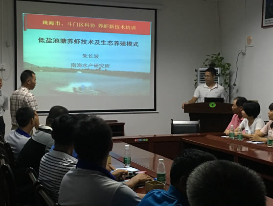 近日,應珠海市科學技術協會、珠海市聚農水產養殖專業合作社邀請,中國水產科學研究院南海水產研究所水產養殖與遺傳育種研究室副主任、重點實驗室科研人員朱長波博士到珠海市斗門區蓮洲鎮開展送科技服務,為當地水產養殖戶培訓養蝦技術。珠海市科協、斗門生態農業園等相關業務負責人和當地水產從業者100多人參加了培訓。 蓮洲鎮是珠海市農業大鎮,2012年9月被批準為廣東省“水產養殖”專業鎮,現有水產養殖面積4.27萬畝,占總耕地面積的61.6%,主要為低鹽度半咸水池塘傳統養殖,對水環境的生態調控、科學投喂、蝦病預防、生態集約化養殖模式等先進養殖技術缺乏有效了解。 朱長波緊扣當地養殖實際,作了題為“低鹽池塘養蝦技術及生態養殖模式”的講座,詳細介紹了蝦類池塘養殖技術關鍵點、南美白對蝦-羅氏沼蝦低鹽池塘混養模式和科學管理技術、池塘種茜生態養殖羅氏沼蝦新技術、低鹽池塘蝦魚高效生態養殖模式應用案例等內容,既有傳統養蝦技術基礎,又涵蓋了生態養蝦新模式的操作要點,深受歡迎,得到了珠海市科協和當地養殖戶的高度評價。