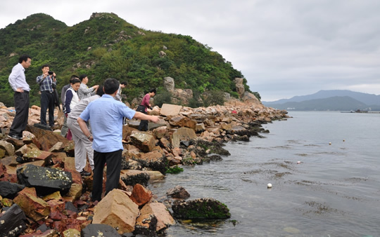 會后,來訪客人現場考察了重點實驗室在人工拋石護岸重建的馬尾藻藻場,高度評價了藻場重建對于基于生態系統水平的大亞灣生態環境保護和修復的重要意義及應用前景,并表示將進一步探討該項藻場生境保護和重建技術在大亞灣海域推廣。