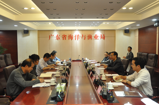2016年4月18日,中國水產(chǎn)科學研究院南海水產(chǎn)研究所所長、農(nóng)業(yè)部南海漁業(yè)資源開發(fā)利用重點實驗室學術(shù)委員會副主任江世貴,中國水產(chǎn)科學研究院南海水產(chǎn)研究所黨委書記徐竹青一行5人,就共同推進南海漁業(yè)中心建設(shè)相關(guān)事宜,到廣東省海洋與漁業(yè)局開展工作交流。廣東省海洋與漁業(yè)局局長文斌主持交流座談會,局總工程師秦磊和有關(guān)處室負責人等參加會議。