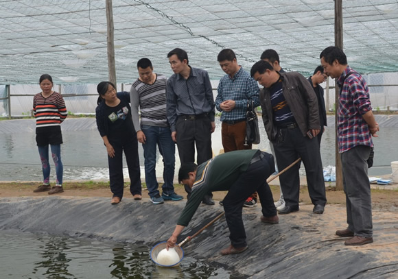 此次活動包括專家授課、咨詢座談、塘頭技術(shù)指導(dǎo)、調(diào)研交流、贈送技術(shù)資料等多種形式,內(nèi)容豐富,技術(shù)先進實用。其中,在110余人參加的南美白對蝦健康養(yǎng)殖技術(shù)培訓(xùn)班上,重點實驗室科研人員李卓佳研究員、朱長波副研究員、冷加華工程師分別作了題為“南美白對蝦池塘養(yǎng)殖技術(shù)”、“蝦魚生態(tài)混養(yǎng)模式與技術(shù)”、“南美白對蝦養(yǎng)殖過程常見問題及調(diào)控技術(shù)”的講座,并開展了答疑解難,派發(fā)技術(shù)資料260多份。在澧縣,重點實驗室科研人員先后了解了官垸鎮(zhèn)、城頭山鎮(zhèn)、澧南鎮(zhèn)的南美白對蝦養(yǎng)殖示范基地當前對蝦種苗淡化、養(yǎng)殖、冷藏儲存、流通等環(huán)節(jié)情況,現(xiàn)場開展了技術(shù)交流指導(dǎo);在安鄉(xiāng)縣、漢壽縣等地,重點實驗室科研人員深入水產(chǎn)養(yǎng)殖基地塘頭,對養(yǎng)殖戶進行了技術(shù)指導(dǎo)服務(wù)。