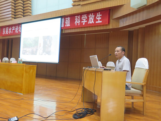 2015年5月25日,東莞市水產學會、東莞市佛教協會和東莞市海洋與漁業局在麻涌鎮聯合舉辦“東莞市水產論壇第3期——精準增殖,科學放生”活動。中國水產科學研究院南海水產研究所資源養護與海洋牧場研究室副主任、重點實驗室科研人員陳丕茂研究員應邀作了“精準增殖科學放生”主題講座。來自東莞市海洋漁業系統及相關單位代表200多人參加了講座。