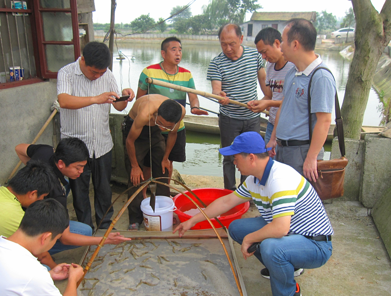 專家組先后深入到常德鼎城區、西洞庭區以及澧縣、漢壽縣、安鄉縣等地的南美白對蝦養殖基地,詳細了解目前的養殖情況,并現場開展技術指導。在常德市對蝦產業技術骨干交流會上,重點實驗室專家對當地南美白對蝦養殖過程中出現的主要問題及其原因進行了全面分析,提出了有效的解決方案,并與參會人員就相關養殖技術問題特別是養殖中后期水質管理和病害防控等關鍵技術問題進行了深入交流,為促進當地南美白對蝦養殖業健康發展發揮有力支撐作用。
