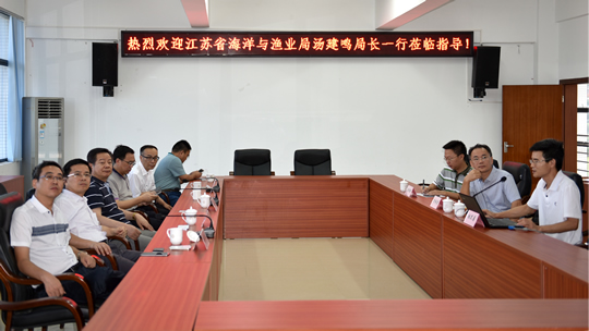 2015年7月28日,江蘇省海洋與漁業局湯建鳴局長到重點實驗室深圳試驗基地考察調研。深圳市經濟貿易和信息化委員會海洋經濟處處長歐陽衛國、深圳華大水產科技有限公司總經理徐軍民等參加調研。實驗主任李純厚研究員、深圳基地主任林黑著等接待了湯建鳴局長一行,并進行了座談交流。