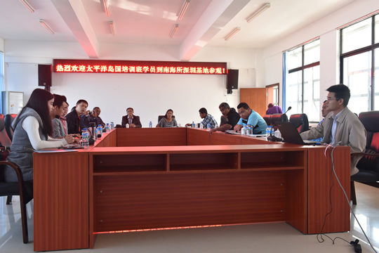 2015年11月30日,廣東省海洋與漁業(yè)局組織第二期廣東太平洋島國(guó)高級(jí)公務(wù)員培訓(xùn)班學(xué)員,到農(nóng)業(yè)部南海漁業(yè)資源開發(fā)利用重點(diǎn)實(shí)驗(yàn)室深圳試驗(yàn)基地參觀學(xué)習(xí)。此次參訓(xùn)學(xué)員主要來(lái)自斐濟(jì)、密克羅尼西亞、湯加、薩摩亞等國(guó)家。