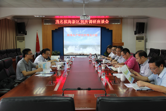 2015年6月24日,茂名濱海新區黨工委副書記、管委會副主任陳研一行3人,到重點實驗室進行考察調研。重點實驗室主任李純厚研究員接待了陳研一行,雙方就加強新區現代漁業建設相關工作開展了座談交流。