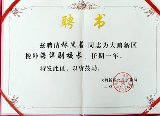 5月16日,由大鵬新區(qū)公共事業(yè)局組織發(fā)起的深圳市大鵬新區(qū)首批“校外實(shí)踐基地”授牌儀式在大鵬中心小學(xué)舉行,重點(diǎn)實(shí)驗(yàn)室深圳試驗(yàn)基地成為首批19家學(xué)生社會(huì)實(shí)踐基地之一,深圳基地主任林黑著研究員被聘為“海洋副校長”, 重點(diǎn)實(shí)驗(yàn)室科研骨干黃小林被聘為“校外輔導(dǎo)員”。