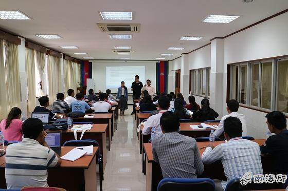 近日,重點(diǎn)實(shí)驗室副研究員馬振華博士應(yīng)邀赴柬埔寨西哈努克,為“2018年柬埔寨可持續(xù)水產(chǎn)養(yǎng)殖技術(shù)海外培訓(xùn)班”進(jìn)行尖吻鱸繁育及養(yǎng)殖技術(shù)培訓(xùn)。此次培訓(xùn)班受中國商務(wù)部委托由福建海洋研究所組織舉辦。柬埔寨相關(guān)研究機(jī)構(gòu)人員、在校大學(xué)生以及養(yǎng)殖戶等近40人參加了培訓(xùn)。