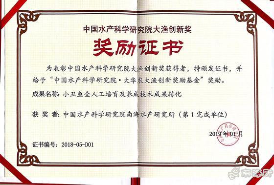 近日,中國水產科學研究院發布了2018-2019年度大漁創新獎的通知,共有5項成果獲獎,其中大漁創新獎基礎研究獎2項、大漁創新獎成果轉化獎3項。重點實驗室依托單位南海水產研究所榜上有名,由熱帶水產研究開發中心完成的“小丑魚全人工培育及養成技術成果轉化”成果獲得大漁創新獎成果轉化獎。