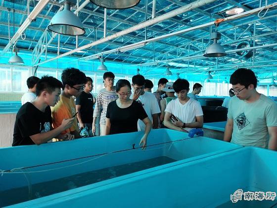 海大師生們認真聽取了馬振華副主任對熱帶中心基本情況的介紹,了解了現場學習過程中的注意事項尤其是安全事項,隨后分成小組,分別到熱帶中心的實驗室、苗種繁育車間、養殖試驗車間以及海上養殖平臺等進行參觀,學習相關知識,并與重點實驗室專家及科研骨干進行互動交流。