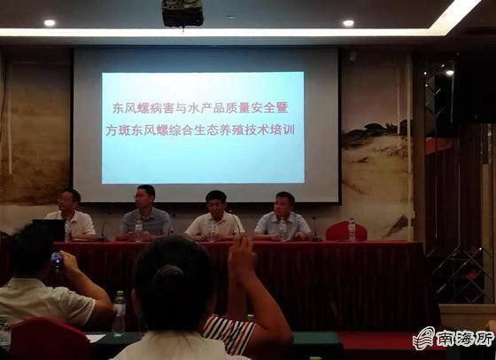 近日,農(nóng)業(yè)農(nóng)村部南海漁業(yè)資源開發(fā)利用重點(diǎn)實(shí)驗(yàn)室、中國水產(chǎn)科學(xué)研究院南海水產(chǎn)研究所熱帶水產(chǎn)研究開發(fā)中心、國家貝類產(chǎn)業(yè)技術(shù)體系三亞綜合試驗(yàn)站,聯(lián)合海南省萬寧市農(nóng)業(yè)農(nóng)村局、萬寧市水產(chǎn)學(xué)會,在該市組織舉辦東風(fēng)螺病害與水產(chǎn)品質(zhì)量安全暨方斑東風(fēng)螺綜合生態(tài)養(yǎng)殖技術(shù)培訓(xùn)班。來自全市基層漁技人員、養(yǎng)殖場和專業(yè)合作社技術(shù)骨干等30多人參加培訓(xùn)。