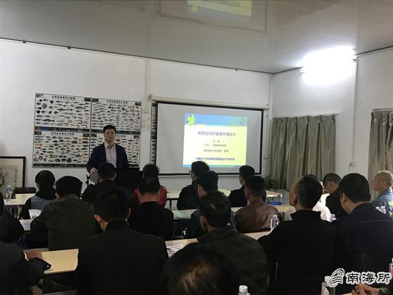 開展科技入戶活動(dòng)期間,共舉行3場技術(shù)專題培訓(xùn)班。馮娟研究員、楊鏗副研究員、王鵬飛副研究員分別就廣東省海鱸產(chǎn)業(yè)現(xiàn)狀、健康養(yǎng)殖與病害防控技術(shù)以及對(duì)蝦養(yǎng)殖模式、養(yǎng)殖水質(zhì)調(diào)控及病害防控技術(shù)等作專題講解,對(duì)100多名水產(chǎn)養(yǎng)殖從業(yè)人員進(jìn)行了技術(shù)指導(dǎo)。