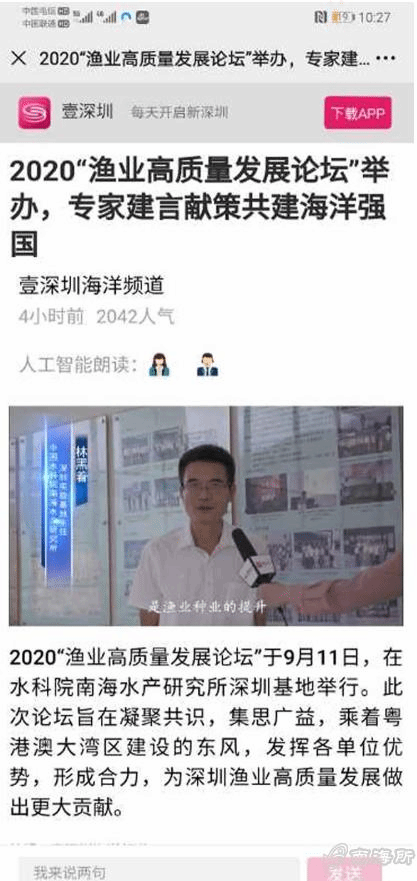 改革開放四十年來,深圳漁業取得了有目共睹的成績,南海水產研究所和深圳基地在漁業種業提升、資源環境保護、科普教育、大學生實習基地建設等方面成績顯著、貢獻突出。南海所和深圳基地今后將充分利用深圳的發展優勢,乘粵港澳大灣區建設、先行示范區建設之東風,加強與各方合作,發揮各自優勢特點,為推進深圳漁業產業轉型升級、加快海洋漁業高質量發展、建設“全球海洋中心城市”做出更大貢獻。