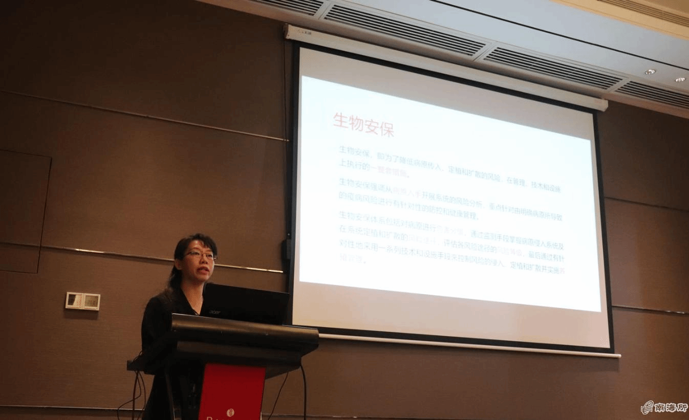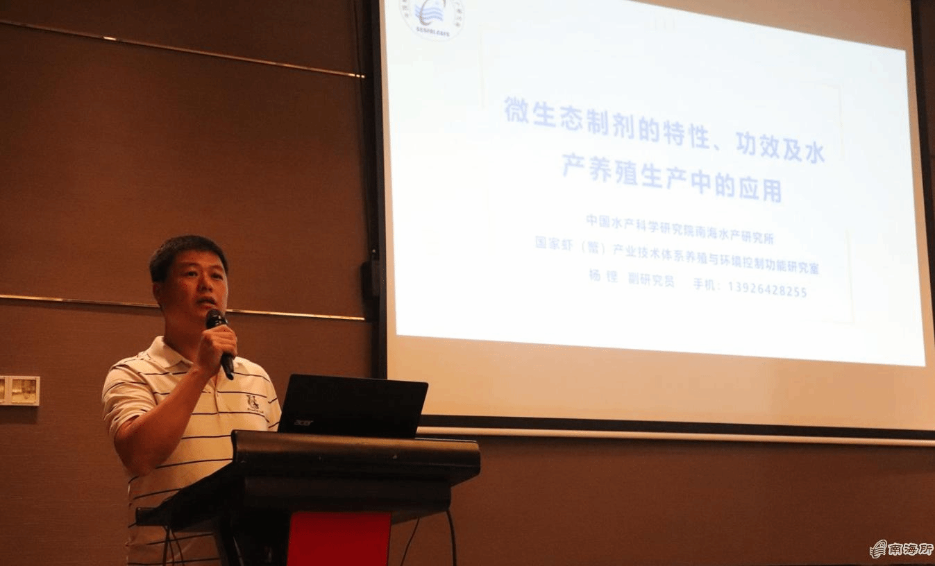 會上,馮娟作了水產良種健康養殖之病害管理報告,強調病害管理在水產良種健康養殖的重要性,提出生物安保要對病原進行危害分級,通過監測手段掌握病原侵入系統及在系統定植和擴散的風險途徑,評估各風險途徑的風險等級。楊鏗作了題為《微生態制劑的特性、功效及水產養殖過程中的應用》的報告,對微生態制劑的應用作為抗生素的替代品逐漸成為水產養殖動物病害防治的一種生物控制模式進行了全面闡述。