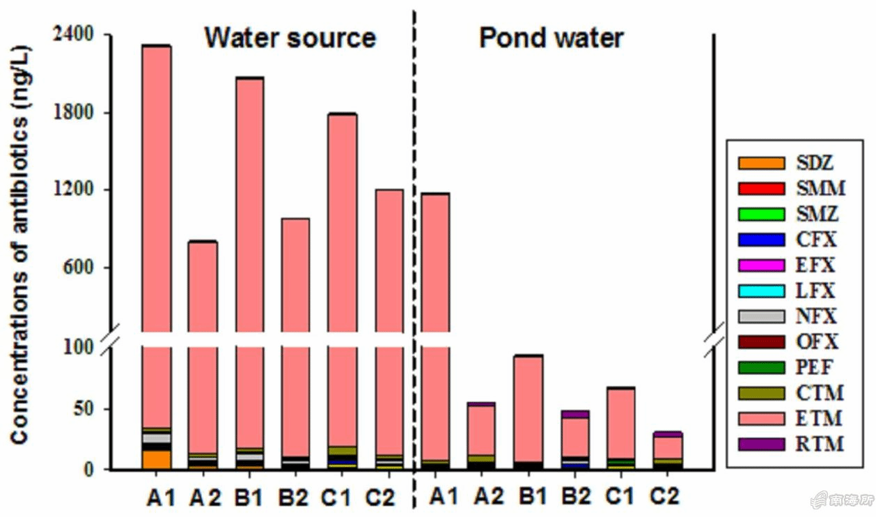 近日,農業農村部南海漁業資源開發利用重點實驗室海水池塘養殖生態環境調控創新團隊對海水池塘養殖環境抗生素來源、抗生素抗性菌(ARB)的滅活和抗生素抗性基因(ARGs)的去除研究取得重要進展,相關成果分別以題為“Spatiotemporal variations and source tracking of antibiotics in an ecological aquaculture farm in Southern China”和“Removal of antibiotic resistance genes and inactivation of antibiotic-resistant bacteria by oxidative treatments”發表在國際期刊《Science of the Total Environment》(JCR 1區,IF=6.551)上,兩篇論文第1作者分別為蘇浩昌和趙曉雨,曹煜成為通訊作者。該研究結果為推動“無抗”健康養殖、科學使用漁用氧化劑防控ARB和ARGs的傳播提供了重要參考。上述研究得到中國水產科學研究院科技創新團隊項目(2020TD54)、國家重點研發計劃“藍色糧倉科技創新”(2019YFD0900402)、國家現代蝦蟹產業技術體系(CARS-48)等項目聯合資助。