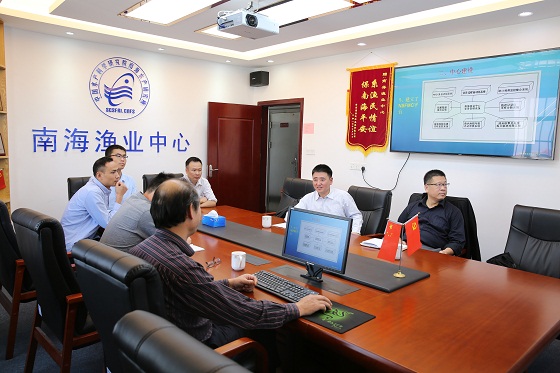 會后,韓旭副局長一行參觀考察了位于新洲的南海漁業中心,聽取了該中心工作匯報,全面了解了漁船信息管理平臺運轉情況,查看了南沙作業漁業船舶情況,對該中心工作進行了現場指導。