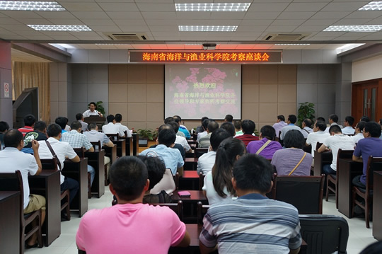 2014年8月28日下午,海南省海洋與漁業(yè)廳黨組成員、省海洋與漁業(yè)科學(xué)院院長(zhǎng)李向民,帶領(lǐng)該院參加“綜合素質(zhì)與業(yè)務(wù)能力提升研修班”的部門(mén)負(fù)責(zé)人、中級(jí)職稱(chēng)等以上干部85人,到中國(guó)水產(chǎn)科學(xué)研究院南海水產(chǎn)研究所和漁業(yè)資源開(kāi)發(fā)利用重點(diǎn)實(shí)驗(yàn)室交流考察。南海所所長(zhǎng)江世貴,副所長(zhǎng)李來(lái)好,副所長(zhǎng)、重點(diǎn)實(shí)驗(yàn)室主任李純厚和各研究室負(fù)責(zé)人等接待了李向民院長(zhǎng)一行,并進(jìn)行了座談交流。
