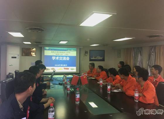 為進一步豐富海上文化生活,拓展學術視野和促進學科融合,保障各項調查任務圓滿完成,5月4日,正在我國南沙海域執行農業農村部“南鋒專項Ⅱ期”2018年春季航次調查任務的 “南鋒”號調查船科考隊,利用調查間隙組織開展了專題學術交流活動。該航次全體科研人員、職務船員等20余人參加了交流研討。