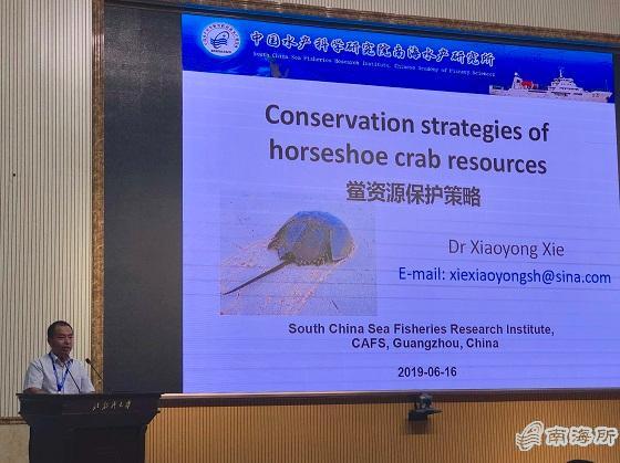 頡曉勇作了題為“Conservation strategies of horseshoe crab resources”的報告,分析了近20多年來我國鱟資源保護的成效,交流了南海所在中國鱟繁育技術、鱟發育生理學、環境污染對鱟幼體發育影響、鱟苗科學放流、鱟營養需求分析等方面的研究進展和成果亮點,提出了保護區管理、鱟資源增殖基礎研究、鱟保護政策、公眾參與鱟保護意識等方面的關鍵問題和建議措施,并先后接受北海電視臺、《海洋與漁業》雜志社等媒體采訪,呼吁全社會共同保護中國鱟資源。