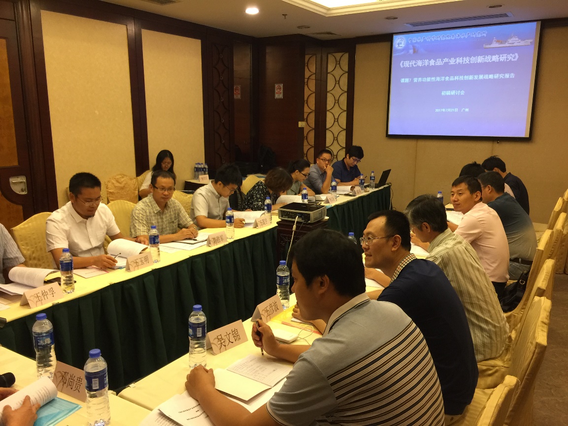2017年7月21日,由國家水產(chǎn)品加工技術(shù)研發(fā)中心(廣州)主任李來好研究員牽頭的營養(yǎng)功能性海洋食品科技創(chuàng)新發(fā)展戰(zhàn)略研究報告初稿研討會在廣州舉行。本次會議由課題牽頭單位國家水產(chǎn)品加工技術(shù)研發(fā)中心(廣州)主辦,科技部中國農(nóng)村技術(shù)開發(fā)中心吳文錦博士出席會議,來自國家頭足類加工技術(shù)研發(fā)分中心(舟山)、國家海參加工技術(shù)研發(fā)分中心(青島)、國家貝類加工技術(shù)研發(fā)分中心(大連)、國家海洋水產(chǎn)品加工技術(shù)研發(fā)分中心(青島)、國家貝類加工技術(shù)研發(fā)分中心(湛江)、國家對蝦加工技術(shù)研發(fā)分中心(海口)、國家海水魚類加工技術(shù)研發(fā)分中心(杭州)、國家海水魚類加工技術(shù)研發(fā)分中心(煙臺)等體系8個分中心、西北大學(xué)的及無限極(中國)有限公司的20余名海洋食品領(lǐng)域相關(guān)學(xué)者專家與企業(yè)代表參加了此次會議。