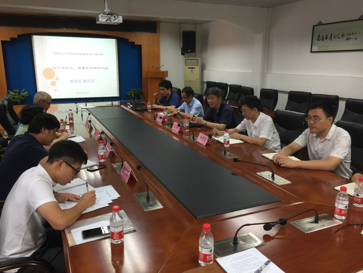 2017年7月16-17日,國家淡水水產品加工技術研發(fā)分中心(上海)主任陳舜勝教授、上海海洋大學食品學院院長謝晶、副院長趙勇與邱偉強博士一行4人就水產品加工技術集成基地建設與研究生聯(lián)合培養(yǎng)工作等方面到國家水產品加工技術研發(fā)中心(廣州)調研。會議由國家水產品加工技術研發(fā)中心(廣州)主任李來好研究員主持、副主任楊賢慶研究員等參加座談。