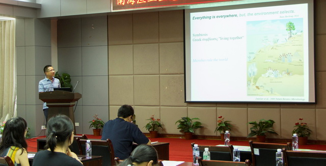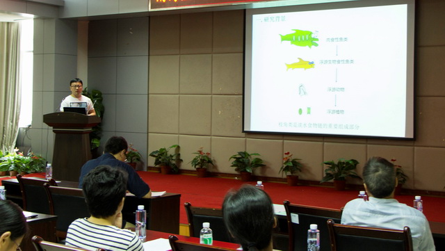 會上,暨南大學何學佳博士、歐林堅博士和中國科學院南海海洋研究所周國偉博士分別應邀作了題為“安氏偽鏢水蚤核酸標志物研究”、“河流來源的DOM輸入對近岸海域浮游生物群落的影響”、“海洋酸化對芽枝鹿角珊瑚共附生微生物群落的影響”的學術報告,介紹了各自研究取得的最新進展。南海水產研究所田斐、徐磊、陳鈺祥、張魁、張俊分別交流了各自項目研究進展和取得的新成果。與會人員圍繞營養物質輸入對浮游生態系統結構的影響、使用新技術和新方法開展漁業資源評估以及水體污染物檢測等方面內容進行了熱烈討論。