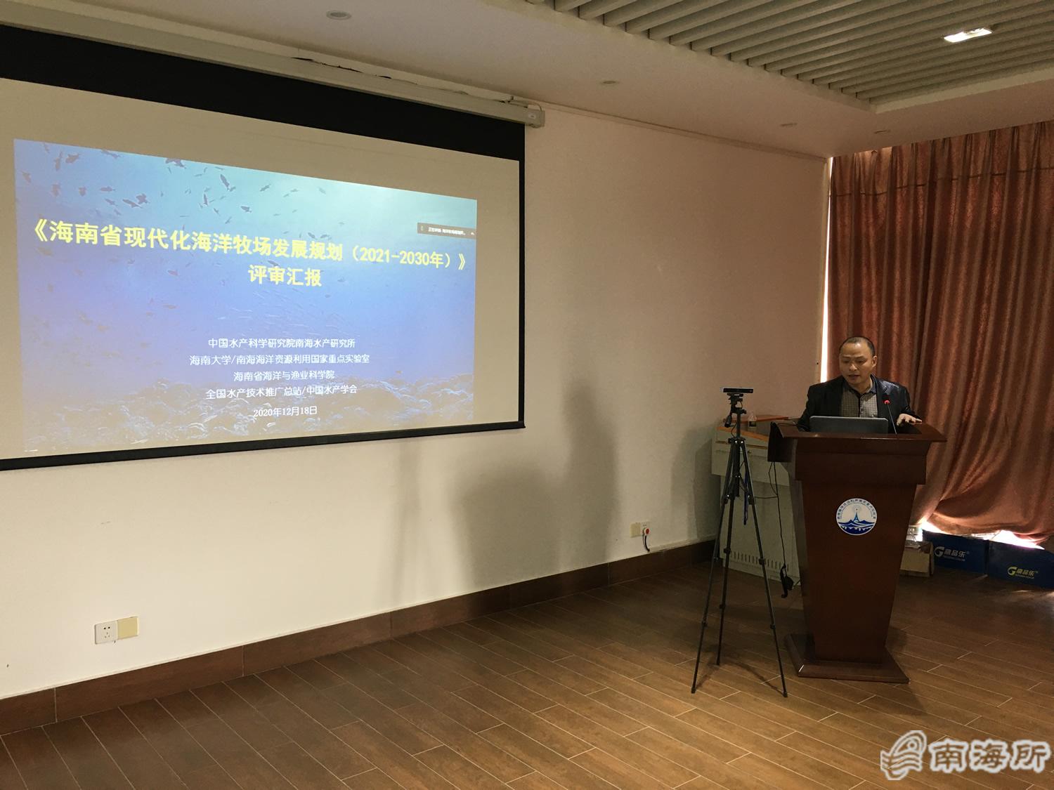 近日,海南省農業農村廳組織有關專家召開會議,對中國水產科學研究院南海水產研究所牽頭編制的《海南省現代化海洋牧場發展規劃(2021-2030年)》進行評審。評審專家組由大連海洋大學、上海海洋大學、浙江大學、海南熱帶海洋學院、海南省海洋監測預報中心等單位的專家組成。該規劃編制負責人、南海所陳丕茂研究員做規劃編制情況匯報,海南大學/南海海洋資源利用國家重點實驗室、海南省海洋與漁業科學院、全國水產技術推廣總站/中國水產學會等編制參加單位有關專家等參加會議。