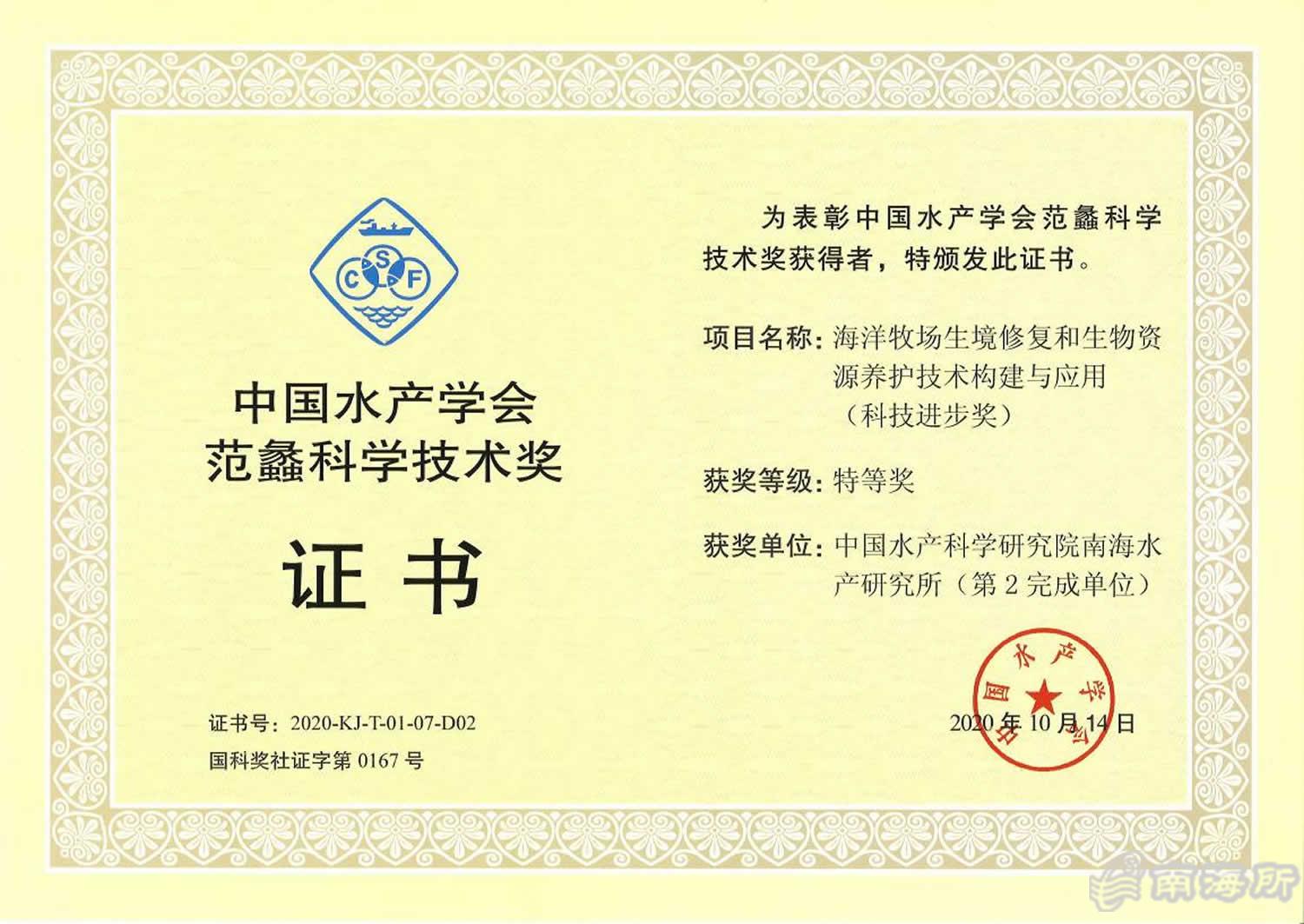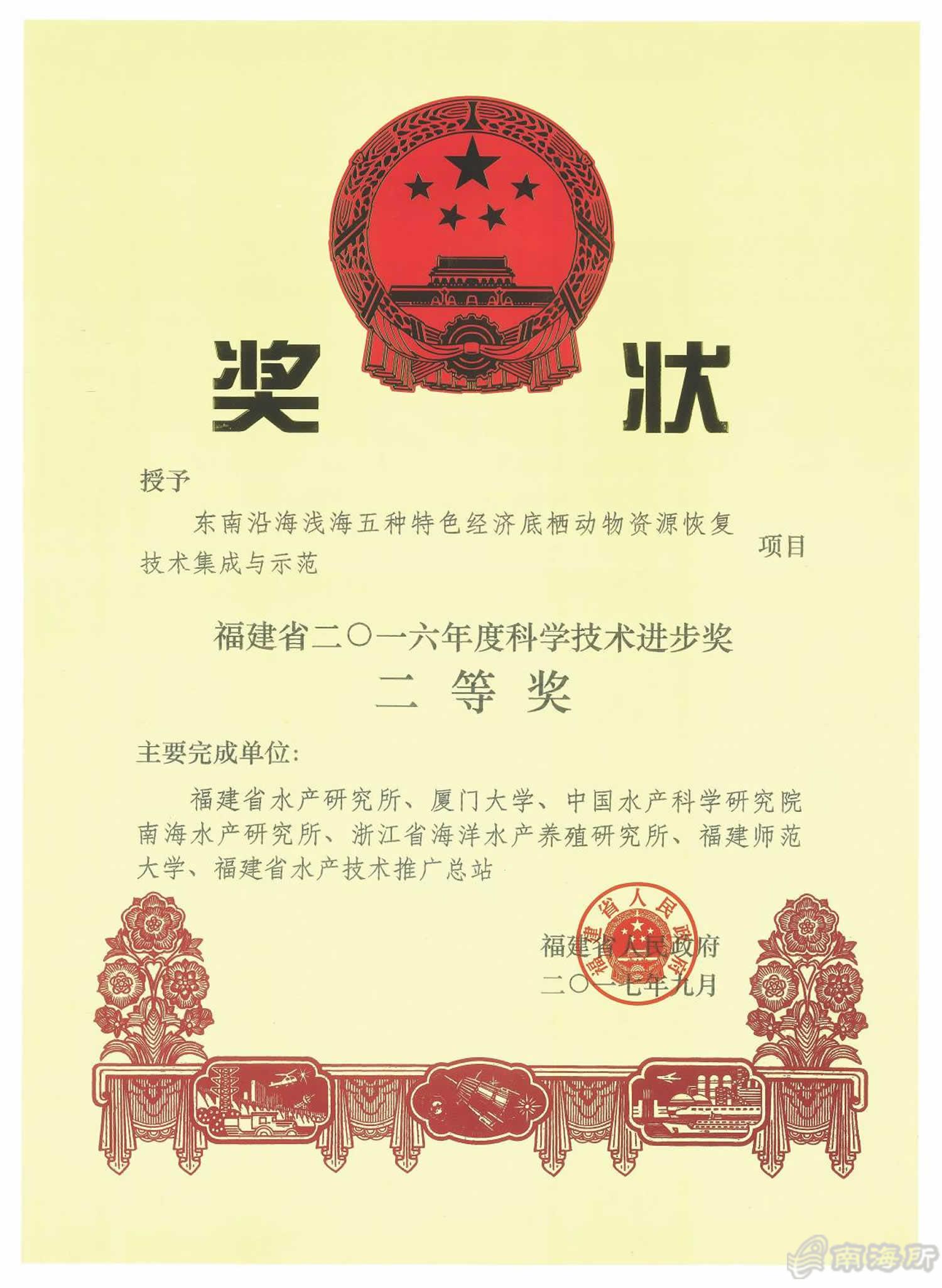 鈥滀笢鍗楁部嫻鋒祬嫻蜂簲縐嶇壒鑹茬粡嫻庡簳鏍栧姩鐗╄祫婧愭仮澶嶆妧鏈泦鎴愪笌紺鴻寖鈥濊幏2016騫寸寤虹渷縐戝鎶鏈繘姝ュ浜岀瓑濂栥?br>