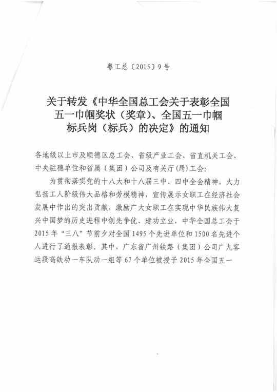 銆銆鏃ュ墠錛屽箍涓滅渷鎬誨伐浼氬彂甯冦婂叧浜庤漿鍙? 涓崕鍏ㄥ浗鎬誨伐浼氬叧浜庤〃褰板叏鍥戒簲涓宸懼訃濂栫姸錛堝绔狅級銆佸叏鍥戒簲涓宸懼訃鏍囧叺宀楋紙鏍囧叺錛夌殑鍐沖畾>鐨勯氱煡銆嬶紝瀵硅幏寰楀叏鍥借崳瑾夌殑濂寵亴宸ュ厛榪涘崟浣嶅拰鍏堣繘涓漢榪涜閫氭姤琛ㄥ槳銆傚崡嫻鋒按浜х爺絀舵墍瀵硅櫨鍋ュ悍鍏繪畺瀹為獙瀹よ涓崕鍏ㄥ浗鎬誨伐浼氭巿浜?015騫粹滃叏鍥戒簲涓宸懼訃鏍囧叺宀椻濊崳瑾夌О鍙鳳紝榪欐槸璇ュ厛榪涢泦浣撶戶2011騫磋幏寰楀箍涓滅渷鐩存満鍏斥滃肪甯兼枃鏄庡矖鈥濄?013騫磋幏寰楀箍涓滅渷鈥滃肪甯兼枃鏄庡矖鈥濈О鍙蜂箣鍚庡彇寰楃殑鍙堜竴孌婅崳錛屼篃鏄崡嫻鋒墍鑾峰緱鐨勭1涓滃叏鍥戒簲涓宸懼訃鏍囧叺宀椻濄?/P>