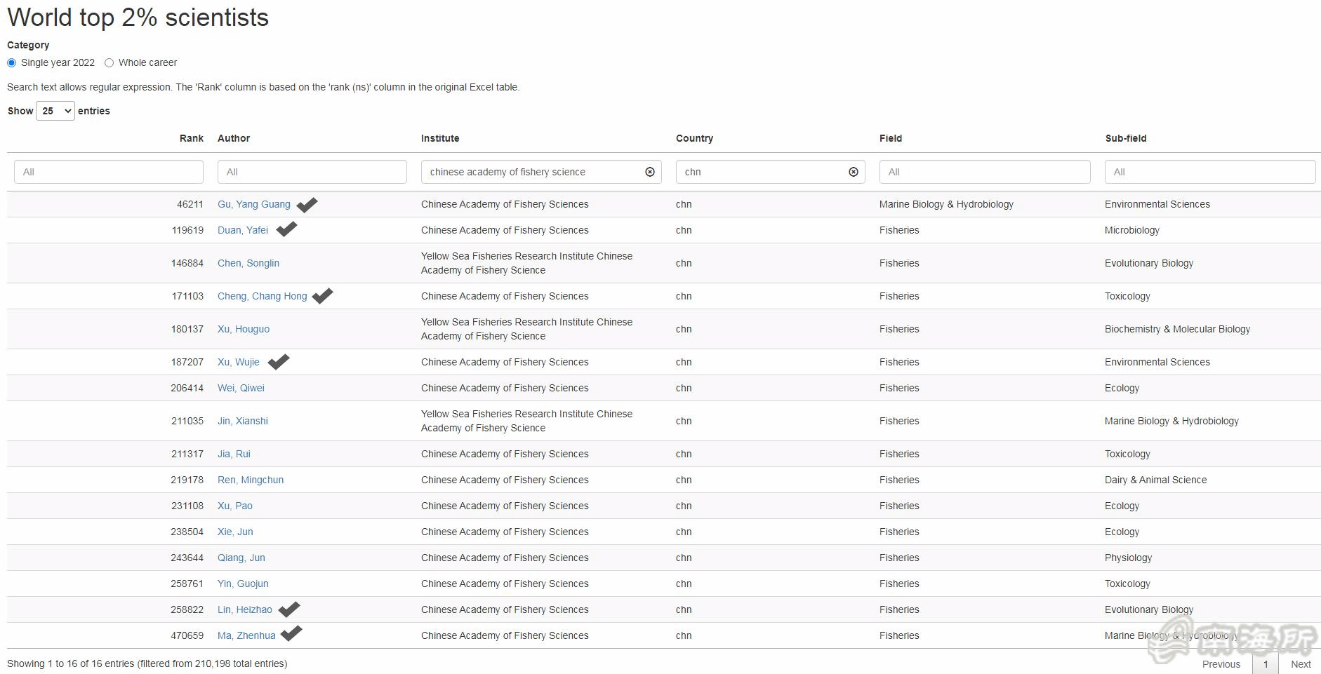 2023騫?0鏈堬紝緹庡浗鏂潶紱忓ぇ瀛ohn P.A.Ioannidis鏁欐巿鍥㈤槦涓庣埍鎬濆敮灝?dāng)鏁版嵁搴撳Q圗lsevier錛夎仈鍚堝彂甯冧簡(jiǎn)2023騫村害鈥滃叏鐞冨墠2%欏跺皷縐戝瀹舵鍗曗濓紙Top 2% of Scientists on Stanford List錛夌鍏増銆傝姒滃崟鍒嗕袱涓帓琛屾錛屽叾涓滅粓韜瀛﹀獎(jiǎng)鍝嶅姏鎺掕姒滐紙1960-2023騫達(dá)級(jí)鈥濈粺璁$瀛﹀鑱屼笟鐢熸動(dòng)鏈熼棿鐨勭患鍚堝獎(jiǎng)鍝嶈〃鐜幫紝鈥滃勾搴︾瀛﹀獎(jiǎng)鍝嶅姏鎺掕姒滐紙2023騫村害錛夆濊仛鐒︾瀛﹀涓婁竴騫村害鐨勫鏈獎(jiǎng)鍝嶅姏銆備腑鍥芥按浜х瀛︾爺絀墮櫌鍗楁搗姘翠駭鐮旂┒鎵璋烽槼鍏夈佹浜氶銆佺▼闀挎椽銆佸緪姝︽澃銆佹灄榛戠潃銆侀┈鎸崕絳?浣嶄笓瀹跺叆閫夆滃勾搴︾瀛﹀獎(jiǎng)鍝嶅姏鎺掕姒滐紙2023騫村害錛夆濄?/p>