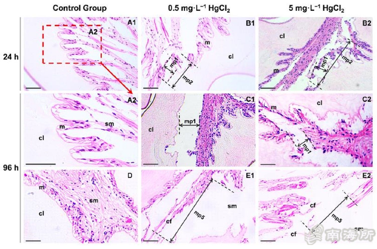2024騫?2鏈堬紝鍗楁搗鎵涓崕椴庝繚鎶ょ鐮斿洟闃熷湪鐜縐戝涓庣敓鎬佸棰嗗煙钁楀悕瀛︽湳鏈熷垔銆夾quatic Toxicology銆嬶紙JCR 1鍖篢OP鏈熷垔錛孖F=4.1錛変笂鍙戣〃浜?jiǎn)棰樹负鈥淗istopathological and histochemical analysis of the digestive tract of adult horseshoe crabs under mercury stress鈥濈殑璁烘枃錛岃仈鍚堝煿鍏葷澹爺絀剁敓寮犺弨閾冧負(fù)絎竴浣滆咃紝棰夋檽鍕囧壇鐮旂┒鍛樺拰璋烽槼鍏夌爺絀跺憳涓洪氳浣滆呫傝鐮旂┒棣栨閫氳繃緇勭粐鐥呯悊瀛﹁瘎浼板渾灝鵑矌娑堝寲閬撴崯浼わ紝鍙戠幇姹烇紙姣掓ф渶寮虹殑閲嶉噾灞烇級(jí)瀵瑰渾灝鵑矌娑堝寲閬撴崯浼ょ▼搴︽帓搴忎負(fù)錛氳儍澹?gt;椋熼亾>鑲犻亾錛屾睘鏆撮湶緇勭殑綺樿啘灞傛崯浼ゅ樊寮傞殢鐫鏃墮棿鎺ㄧЩ鑰屽噺寮便傝繖欏圭爺絀朵負(fù)鐞嗚В閲嶉噾灞炴瘨鎬у鐝嶇█嬋掑嵄鐗╃娼滃湪褰卞搷鎻愪緵浜?jiǎn)閲嶈瑙佽В锛岒q朵負(fù)鏈潵鐨勯矌鏍栨伅鍦扮幆澧冮闄╄瘎浼板拰綆$悊鎻愪緵浜?jiǎn)绉戝渚濇嵁銆?/p>